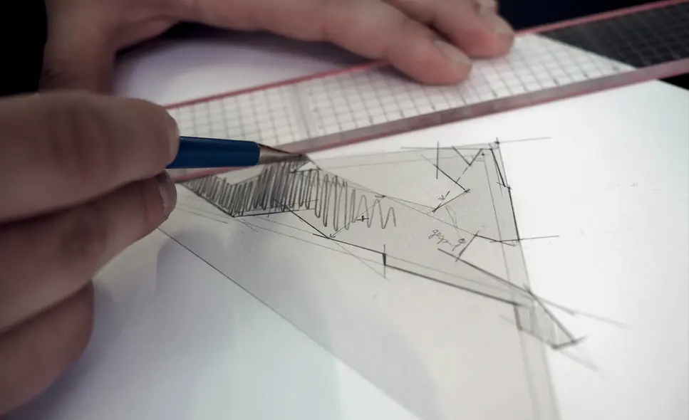 Next, we combined the rabbit with a triangle and shaped it to look like a jagged mountain with a complex system of parallel lines and angles.